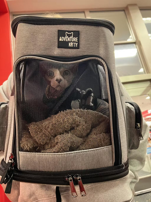 I’m in love with this bag! My cat has anxiety so it really helps to have something so light & comfortable to carry and bring her along on my adventures with. whether it be to the grocery store or the park, it’s able to hold enough things so I can put all my belongings inside as well as hers, It’s perfect! and most importantly she loves being able to peek through the breathable mesh and enjoy the views. 🤍🤍