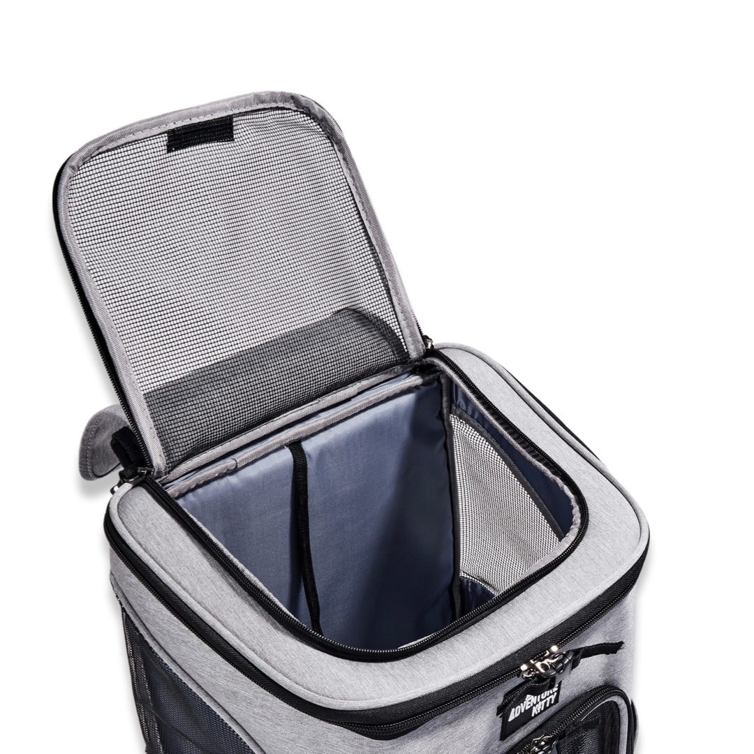 Built for everyday adventures, this cat backpack keeps your co-pilot comfy and you organized. The rollable top mesh opens for fresh airflow and wide views—or rolls down for shade—while high-quality zippers keep everything secure. Two side pockets handle the essentials (treats, water, phone). A breathable shoulder strap and adjustable chest strap distribute weight and stay cool, so longer outings feel easy.
